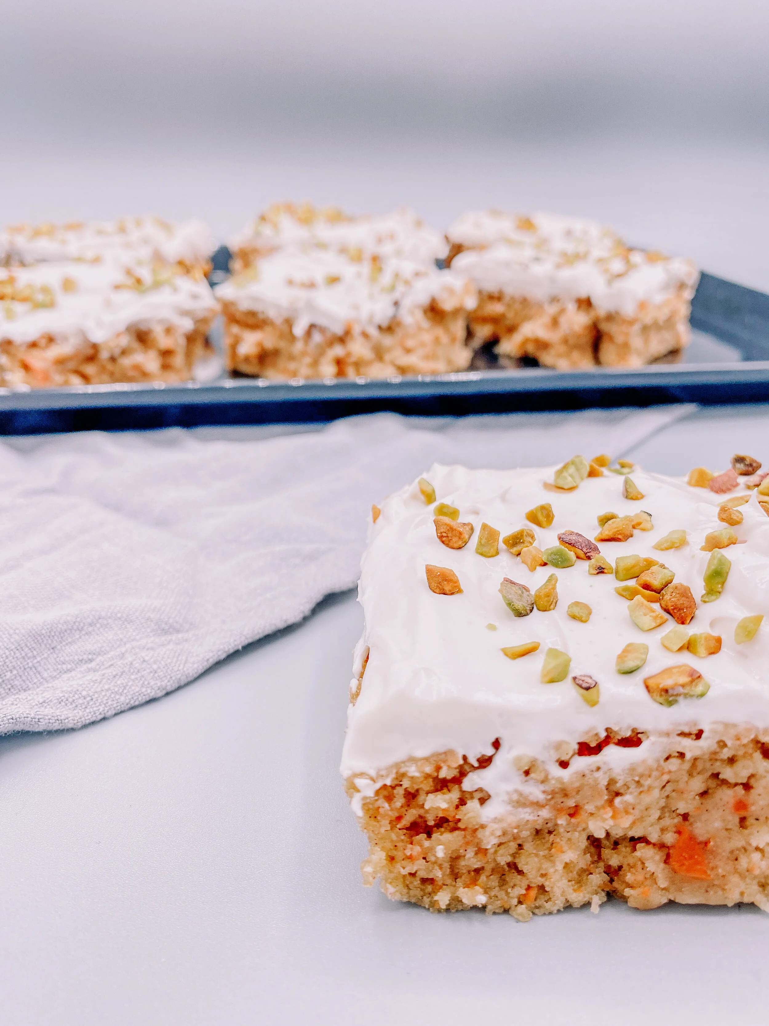 Easter is here! Let yourself get tempted by chocolate or carrot cake! This year we decided to be more on the carrot cake side. Indeed we love this cake. Did you know that the carrot cake started to be popular in the ’70s? crazy and it is still trendy and still loved by so many people. The carrot cake we want to show you today is vegan, nut-free, gluten-free, sugar-free, low in calories, and delicious of course!