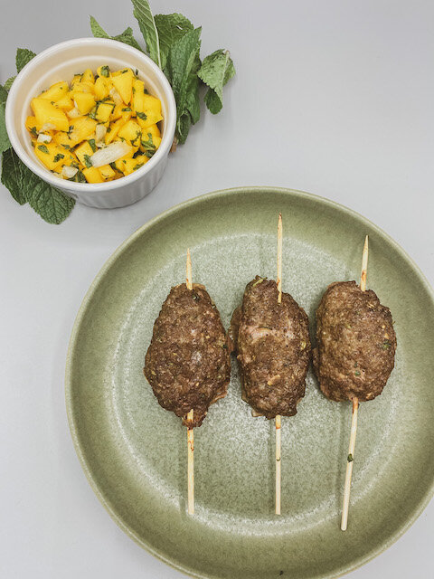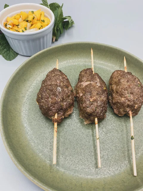 Beef Zucchini Meatballs & Mint Mango Salad