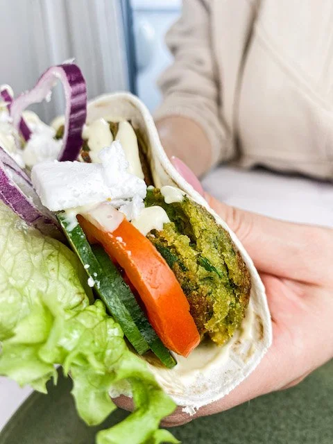 They are good to include in any, wrap, sandwich, pita bread, or just as they are as a part of a meal. For us, it will be a wrap, with the killer combo: feta, onion, salad, cucumber, and tomatoes! Enjoy!